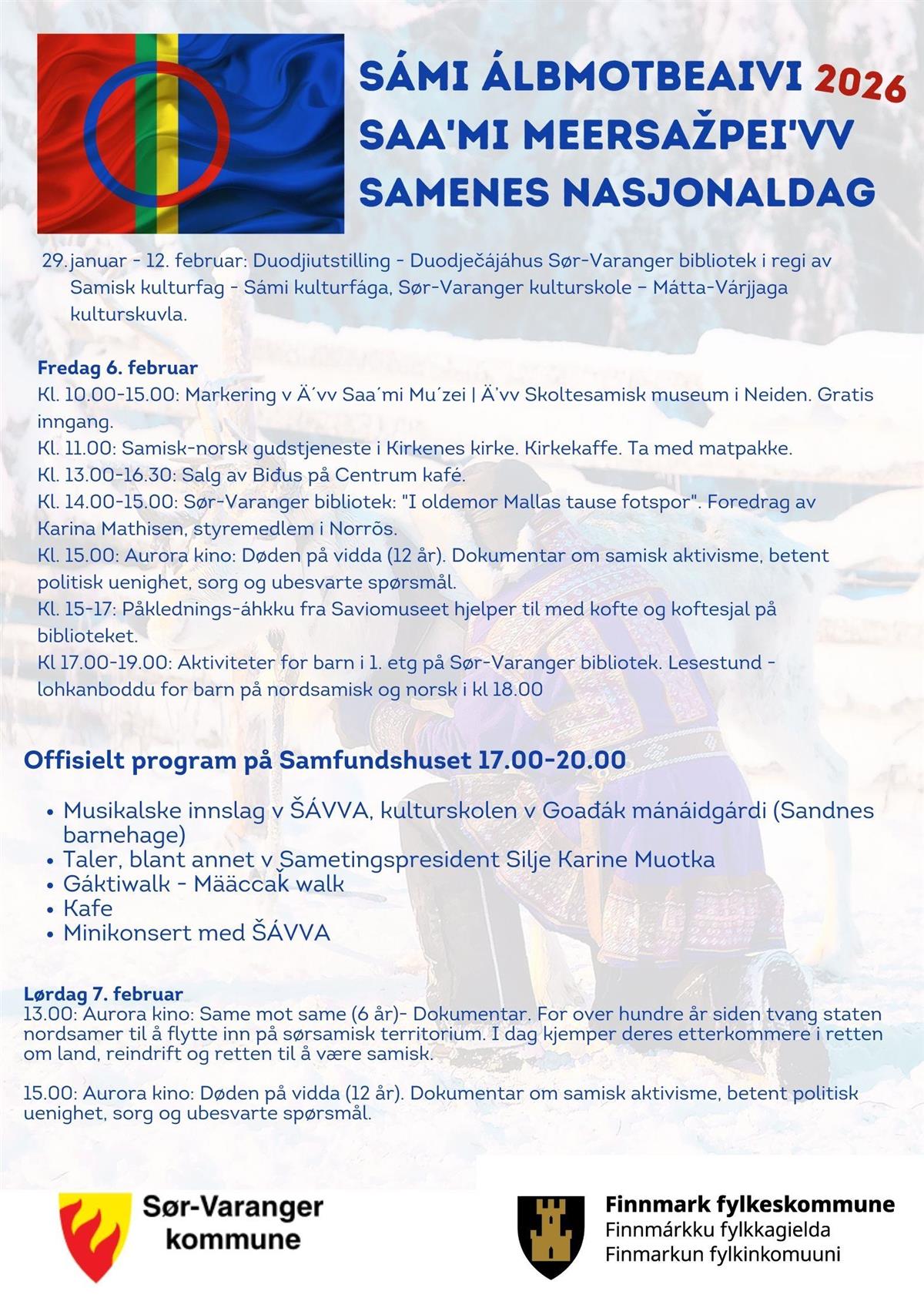 Komiteen har jobbet med planleggingen siden i november. Det blir en innholdsrik festdag med blant annet besøk av Sametingspresident Silje Karine Muotka. Programmet følger tidligere års praksis med ulike aktiviteter på dagtid og offisielt program på Samfundshuset på ettermiddagen.
